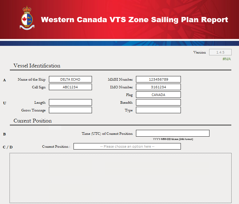 Il est demandé aux navires de joindre le rapport Excel complété à un courrier électronique lorsqu'ils soumettent des demandes d'autorisation en zone de trafic hauturier dans l’Ouest canadien avant d'entrer dans la zone (ARNM 3.5.2.1). Veuillez confirmer que la version la plus récente du formulaire a été remplie avant la soumission. Les rapports VTS Offshore soumis dans un ancien format ou une version incorrecte du nouveau formulaire seront renvoyés et le navire sera invité à les soumettre à nouveau dans le nouveau format et/ou la version la plus récente.
